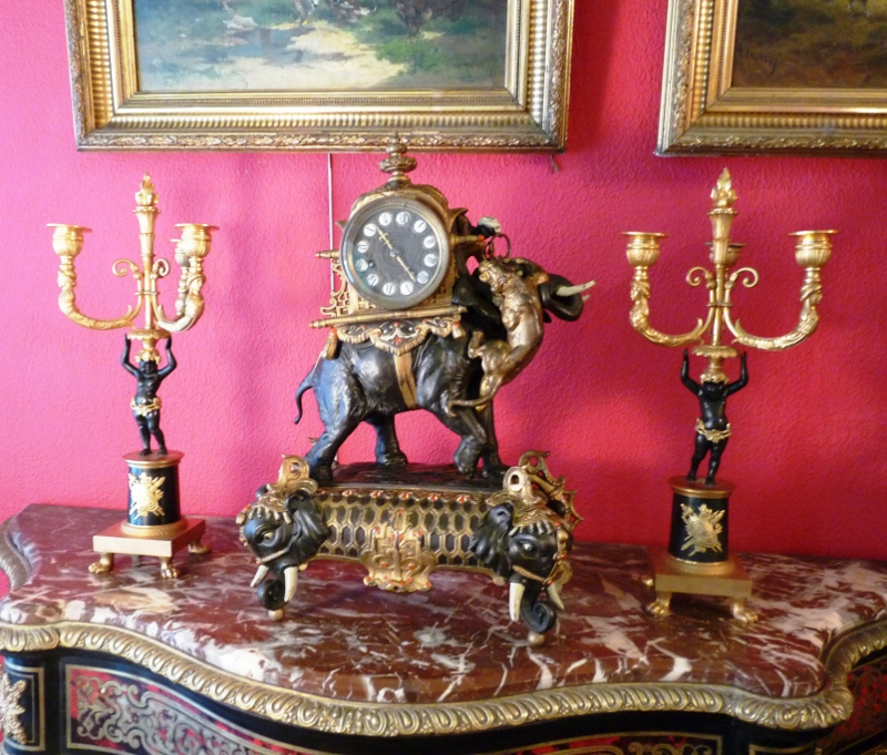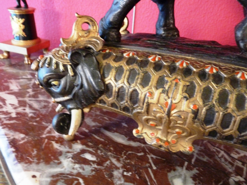 Le socle est ré-haussé de têtes d'éléphant de chaque coté.
