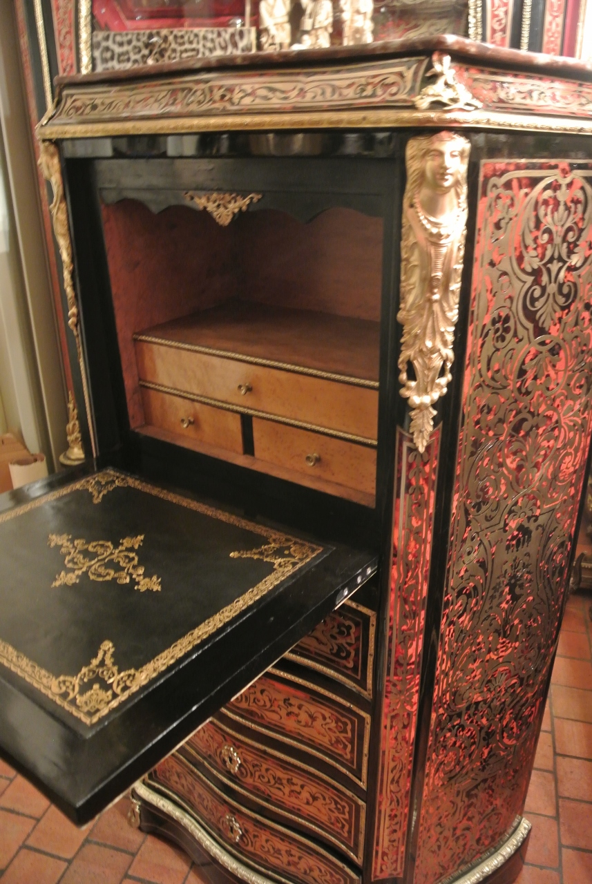 Superbe et rare secrétaire en marqueterie Boulle avec écaille de tortue véritable et cela sur toutes les faces.